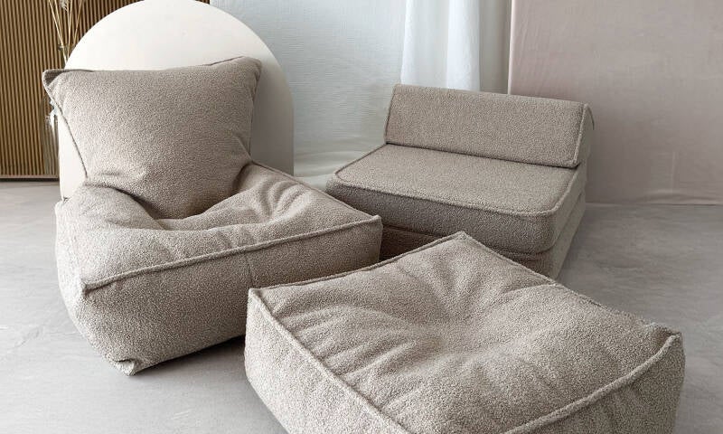 Ontdek onze collectie zitzakken, poefs en loungers gemaakt van mooie Boucléstoffen in diverse kleuren die perfect passen in ieder interieur, kinderslaapkamer en speelkamer. Klik op een product om meer details te bekijken en te kopen.