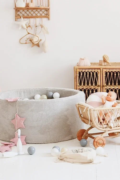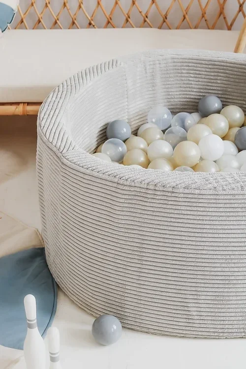 Dit verrassend en heel trendy design wordt vaak door de ouders. Velvet Ribstof voelt heel zacht aan en de stevige wanden beschermen de baby. Tegelijkertijd is dit ballenbad goed voor jaren speelplezier en draagt bij de motorische ontwikkeling en prikkelt de zintuigen van de baby's.